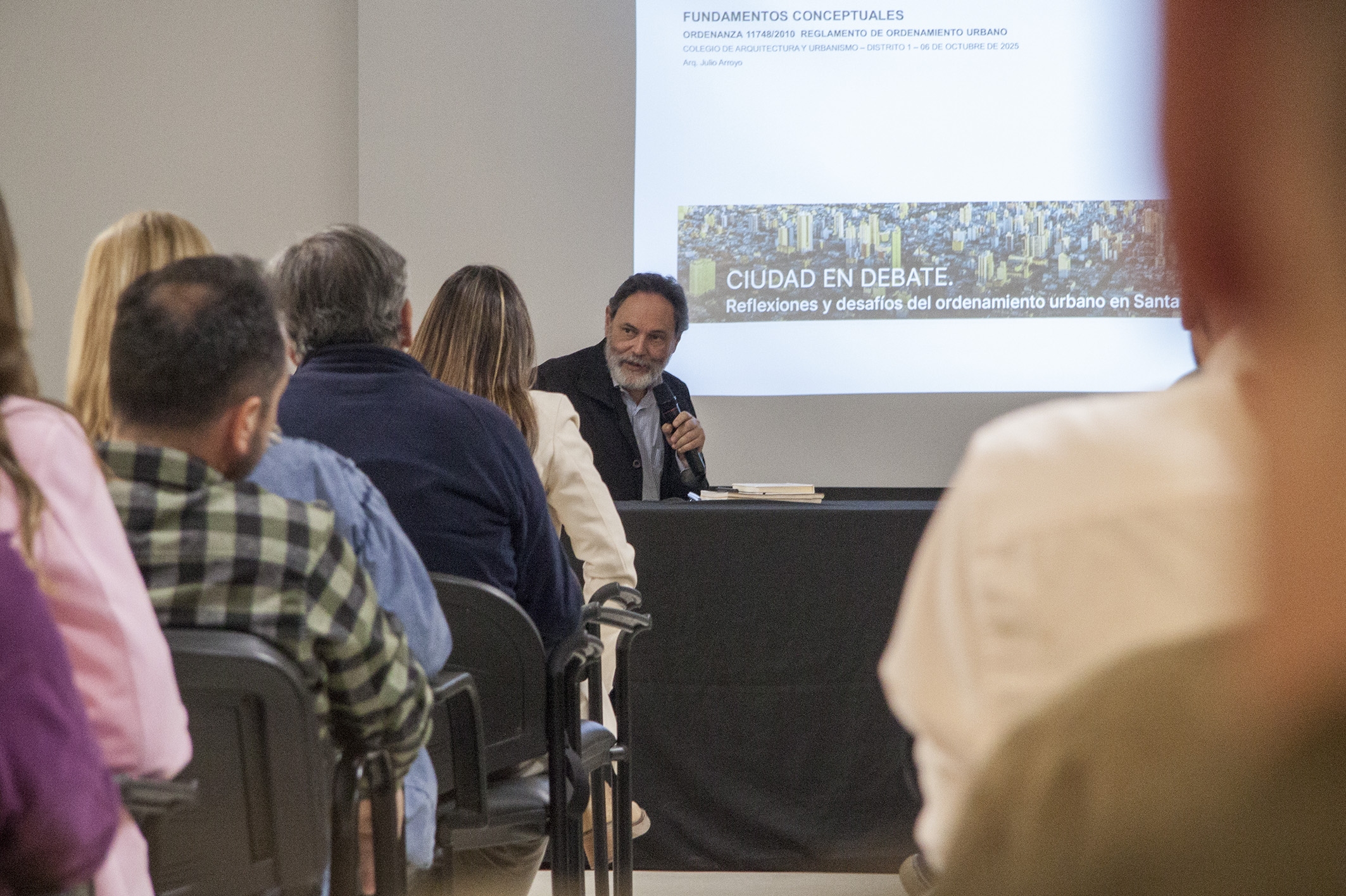 El encuentro contó con las exposiciones de los arquitectos Osvaldo Mansur, Marcelo Corti, Mirta Levin, Julio Arroyo y Octavio Benuzzi, quienes abordaron temas como la normativa urbana, los procesos de densificación, el origen conceptual del reglamento, las demandas de los desarrolladores y la implementación de los instrumentos de gestión.